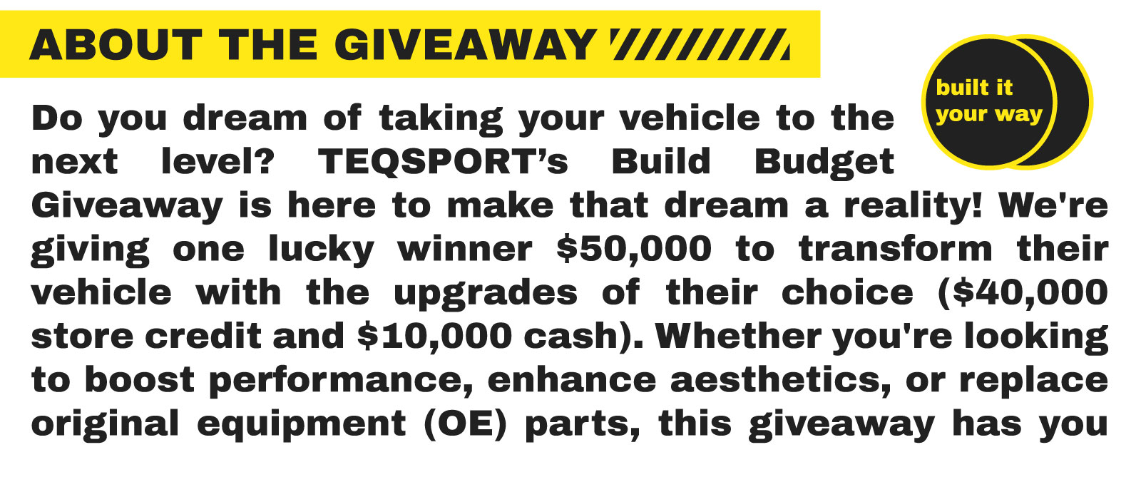 *Z1 BUILD BUDGET GIVEAWAY. NO PURCHASE NECESSARY TO ENTER OR WIN. A PURCHASE WILL NOT INCREASE YOUR CHANCES OF WINNING. Open to legal residents of the 48 contiguous United States (excludes AK & HI), the District of Columbia (excluding Puerto Rico, all other U.S. Territories and Possessions and overseas Military Installations) and Canada (excluding Quebec), who are licensed drivers and the legal age of majority (19 in AL and NE, 21 in MS, and 18 in all remaining states, the District of Columbia and Canada) in their jurisdiction of residence at time of entry. Begins at 12:00:00 AM ET on October 1, 2025 and ends 11:59:59 PM ET on November 5, 2025. One Grand Prize valued at $50,000 USD. Odds of winning depend upon the number of eligible purchase and non-purchase entries received. See Official Rules for complete details including how to enter without making a purchase. Sponsor: Z1 Motorsports, 2877 Carrollton Villa Rica Hwy, Carrollton, GA 30116.